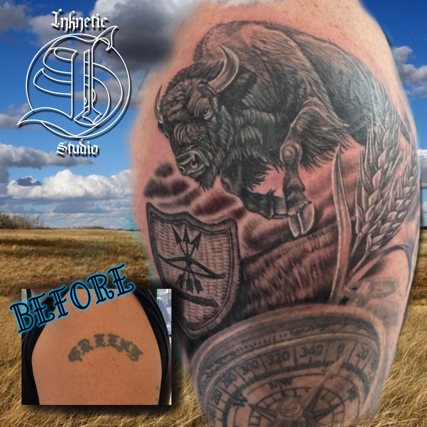 One year into my tattoo career, I was featured in the tattoo magazine, "Tattoo for Men". That's when I started to really take off as an artist. I traveled around to conventions when I could- Having multiple tattoos win awards. Also, meeting artists that inspire me to work harder. Putting many years in the shop I learned a lot and with the help of my wife Heather we decided to go out and start our own studio (Inknetic Studio). This is where I now focus on my craft, in my own environment. I enjoy almost every style tattooing. I really like animal portraits and watercolors. It's also super fun to do the really out there colorful illustrative tattoos. Smooth black & grey is always a blast too! Also, I specialize in cover ups and tattoo redo's. As a 20+ year tattoo artist, I try my best to make my client happy and to enjoy what they have on their bodies.